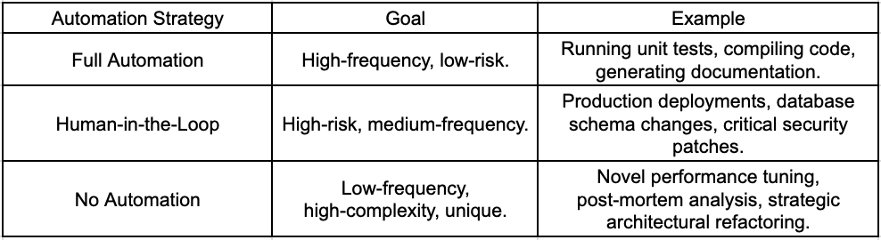 The Guardrail: Introduce intentional friction or "speed bumps." Critical processes—like deployments to production or changes to core infrastructure—should require a manual review step, a "break glass" approval, or even a periodic forced manual execution to ensure knowledge transfer and maintain familiarity.